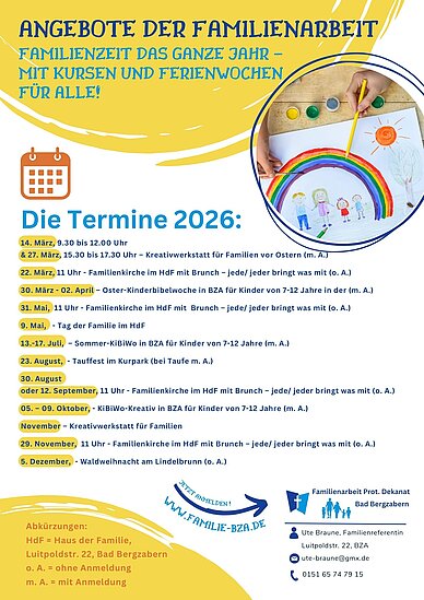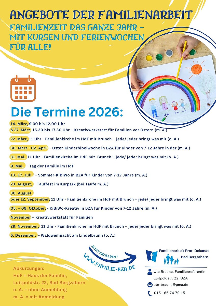 Detaillierte Informationen und genau Termine finden Sie unter: familie-bza.de