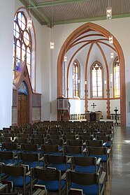 Die Marktkirche beherbergt seit 1532 die Protestanten. Von 1686 - 1879 feierte auch die katholische Kirchengemeinde ihren Gottesdienst im Chorraum, während den Protestanten das Kirchenschiff zugewiesen war.