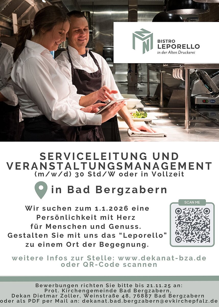 Der Prot. Kirchenbezirk Bad Bergzabern sucht zum 1.1.2026